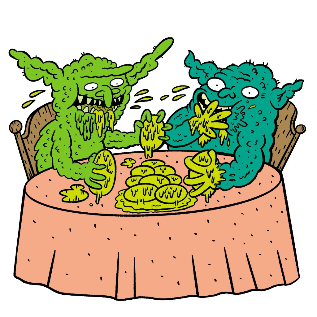 Illustrations for this kids book that features gross, weird and funny tongue twisters.